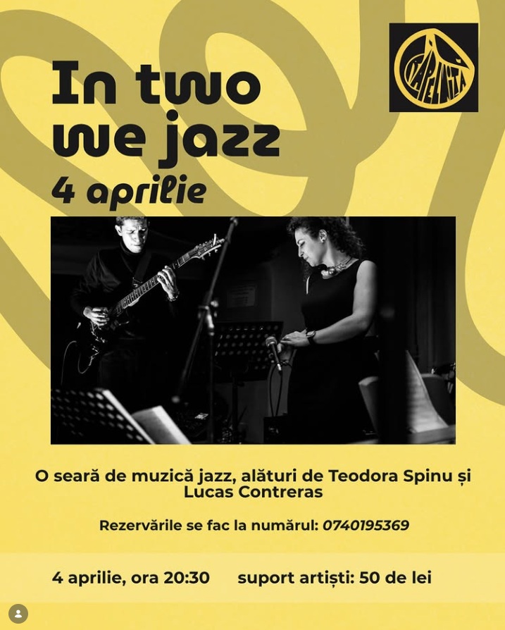 „Lucas și Teodora cântă împreună încă din 2017, încă din perioada în care erau colegi la aceeași universitate. De atunci, fie în duo, trio (Trei de Jazz, A.L.T. Trio) sau cvartet, muzica lor a crescut liber, purtată de inspirația clipei și de dialogul viu al improvizației. În acest concert, vă vor propune câteva standarde de jazz consacrate, explorând un limbaj muzical expresiv și accesibil tuturor iubitorilor genului.