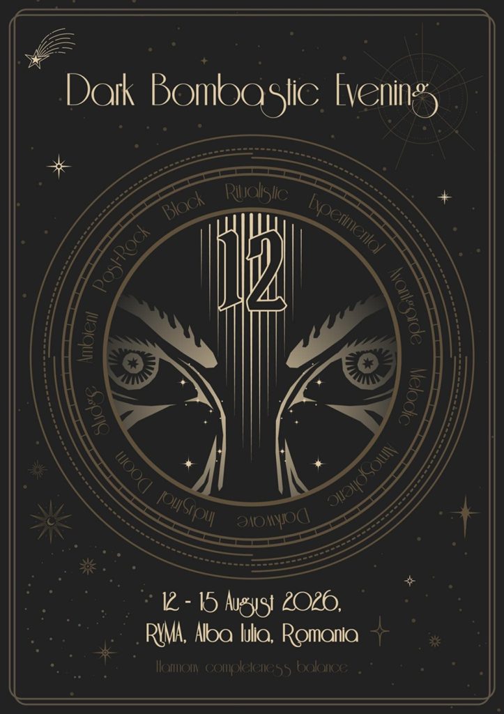 A douăsprezecea ediție a festivalului Dark Bombastic Evening va avea loc anul acesta între 12 și 15 august la Spațiile RYMA din Alba Iulia. Momentan, au fost anunțate următoarele trupe: Old Man’s Child, Pothamus, Evoken, Mesarthim, This Will Destroy You, The Kilimanjaro Darkjazz Ensemble, Wolvennest, Heretoir și Kwoon. Mai multe trupe vor fi anunțate în perioada următoare. Pentru mai multe detalii sau noi informații, puteți accesa site-ul www.darkbombasticevening.com sau pagina de Facebook a evenimentului.