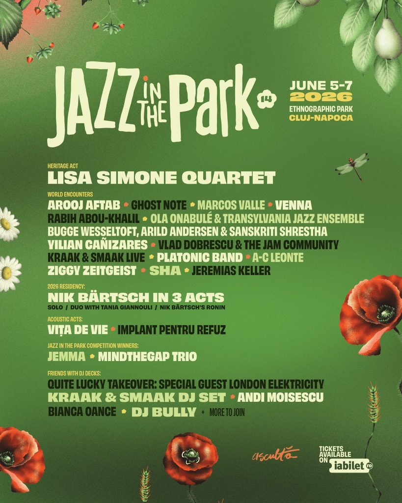 „Cea de-a XIV-a ediție a festivalului aduce noi confirmări în line-up pentru Jazz in the Park 2026: câștigătoarea Grammy 2022, Arooj Aftab, și Ghost-Note se numără printre artiștii internaționali care vor completa atmosfera vibrantă a ediției din acest an, programată între 5 și 7 iunie, în Parcul Etnografic „Romulus Vuia” din Cluj-Napoca. Iubitorii de jazz mai pot achiziționa până pe 16 aprilie bilete la preț redus. Abonamentele de 2 și 3 zile sunt deja disponibile, iar din 17 aprilie vor fi puse în vânzare și biletele de o zi.