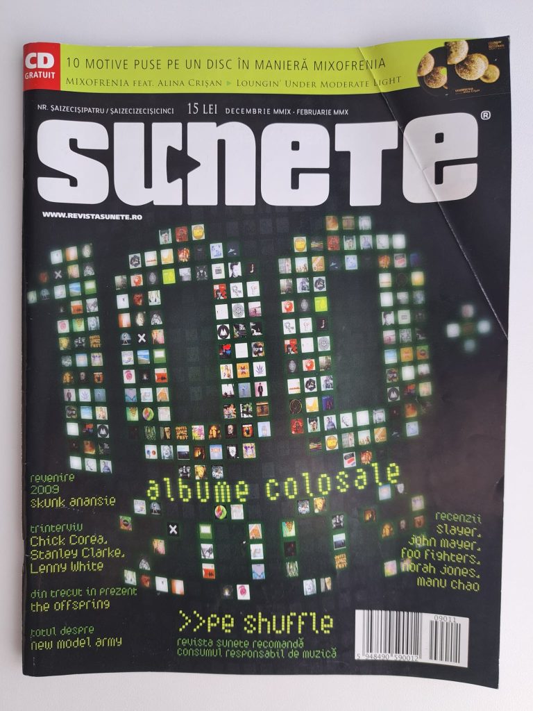 Revista Sunete, numărul 64-65, ianuarie 2010. Fotografie cu pagina care includea interviul.