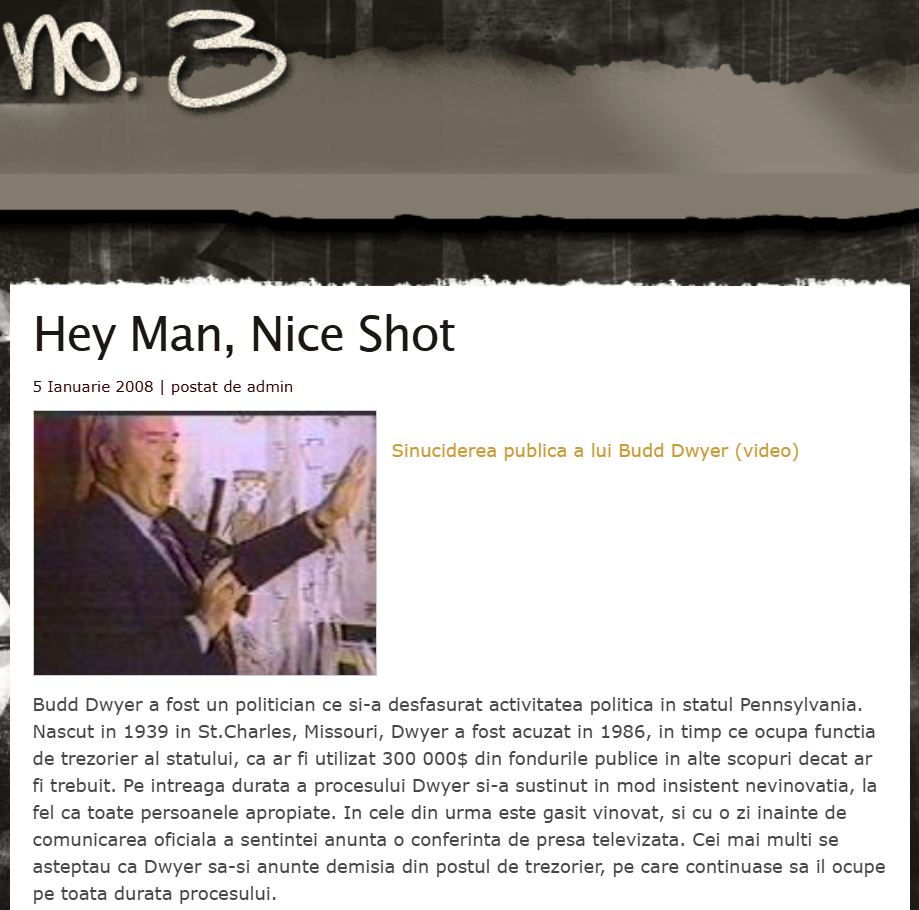 În februarie 2019, se produce un eveniment bizar și neprevăzut: domeniul no3.ro este cumpărat de altcineva, iar la adresa respectivă apare un site vomitiv, care înglobează, parcă, opusul tuturor principiilor după care Vechiul Număr Trei încercase să își desfășoare activitatea. Descrierea paginii respective este ilustrativă: „Pe No3 cele mai noi stiri din toate domeniile de interes, pentru a putea avea acces la informatii fara nicio restrictie. Noutati din frumusete si moda, tehnologie, travel, cultura, divertisment si alte informatii utile iti stau la dispozitie pe site-ul nostru.” Site-ul este infestat de articole copiate, fără citarea surselor, clickbait peste clickbait, iar conținutul este unul sordid – de exemplu, „Cum stai cu dragostea în funcție de zodie?”, „Sucuri de detoxifiere: beneficii pentru slăbit” sau „Dorințele sexuale ascunse ale bărbaților!”. Mai grav, site-ul include în balta de fecale pe care o prezintă lumii și numeroase articole publicate anterior de noi pe Vechiul Număr Trei, descărcate, probabil, de către noul proprietar al domeniului și site-ului dintr-o arhivă digitală și refolosite pentru indexare. Ce palmă din partea Universului, pentru că nu am știut să ne respectăm trecutul! Spuneam la începutul paragrafului că evenimentul a fost unul bizar: într-adevăr, este clar că domeniul a fost achiziționat de o persoană răuvoitoare și/sau lacomă care ne cunoștea, ne urmărise activitatea și încă își amintea de noi, deși trecuseră aproape trei ani de la publicarea ultimului articol! În momentul în care domeniul a devenit disponibil, l-a achiziționat rapid, crezând, eronat, că No.3 reprezintă, pur și simplu, un „brand” care poate genera venituri… Rămânem, măcar, cu satisfacția că planul măreț nu a funcționat: astăzi, site-ul-fantomă continuă să fie online, însă fără urme recente de activitate. Poate că principiile înving, măcar uneori?
